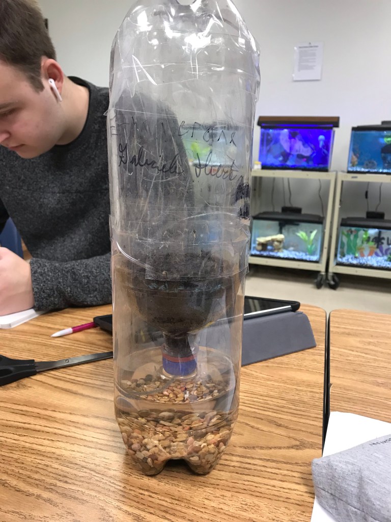 It’s hard to get a measure on the grass but the longest sprout appears to be about 19.6 centimeters. The water level is 6.8 centimeters and clear. There’s still no algae growth sadly. We can see a lot of condensation in the top and around the aquarium level today.